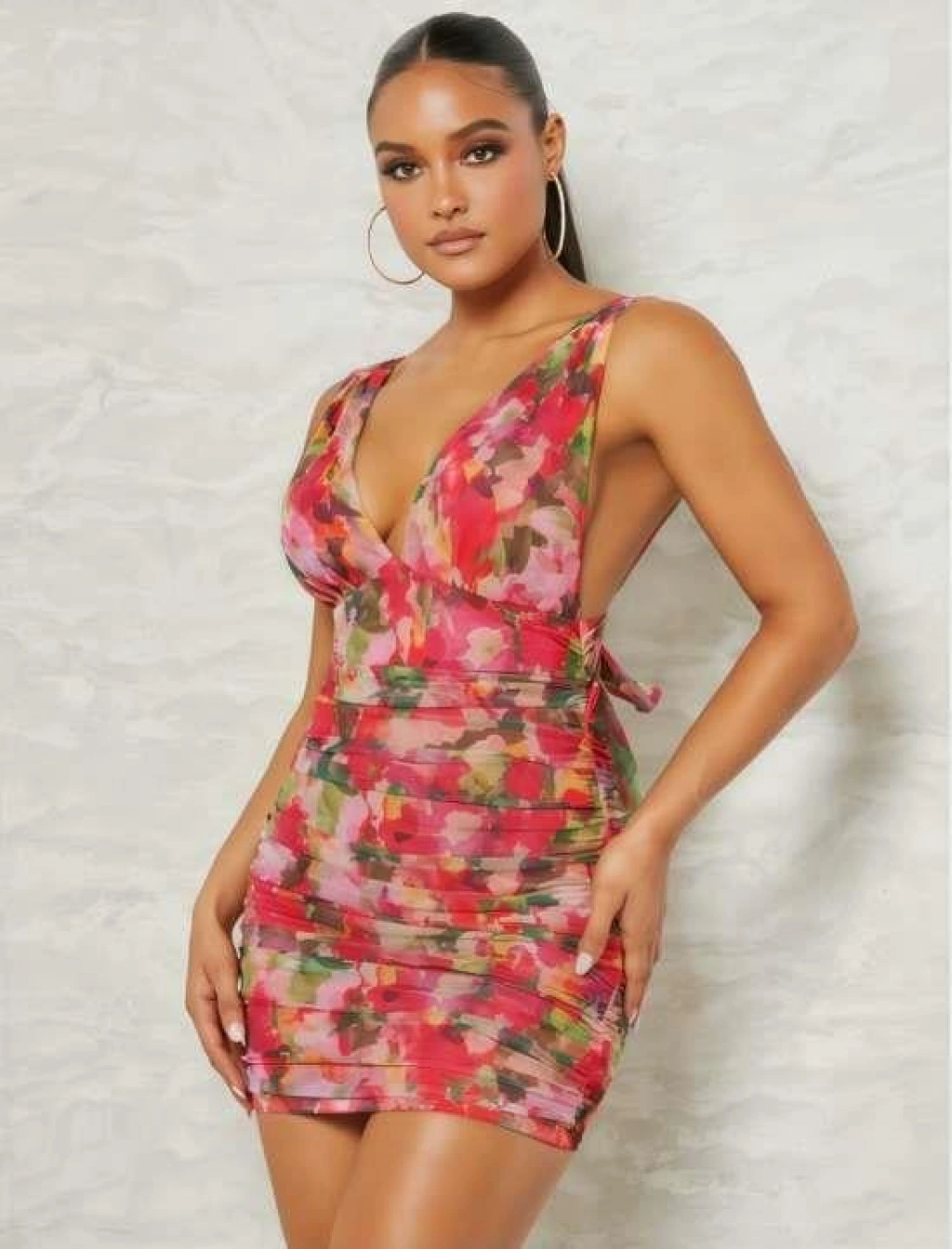 ? Romantik ve Baştan Çıkarıcı Bir Dokunuş! Çiçek Desenli Büzgülü Arkadan Bağlamalı Fantezi Elbise, zarafetle feminenliğin mükemmel birleşimini sunuyor. İnce detaylarla tasarlanan büzgü yapısı, vücut hatlarını zarifçe vurgularken, arkadan bağlamalı şık kesimiyle sırt dekoltesine büyüleyici bir dokunuş katıyor.