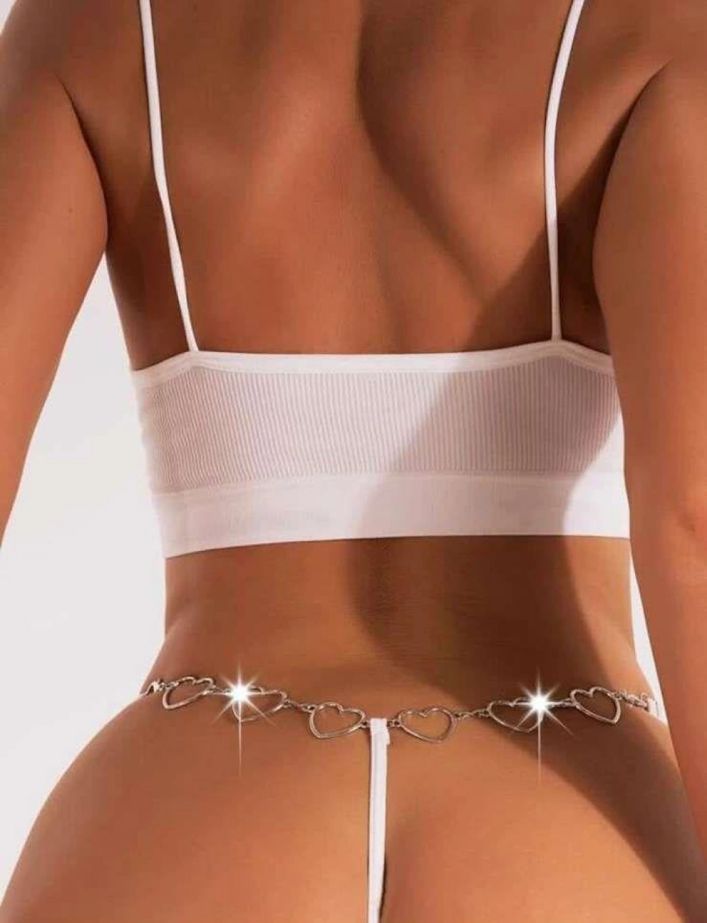 ? Zincir Kalp Detaylı Fantezi Beyaz String Tanga ?