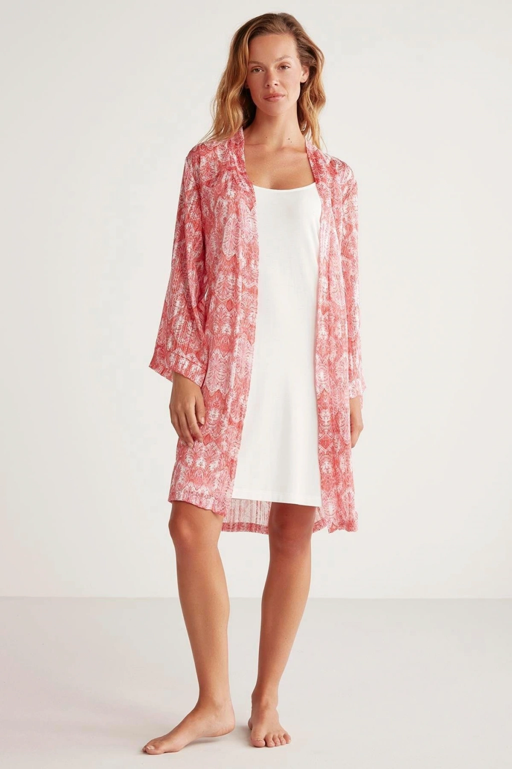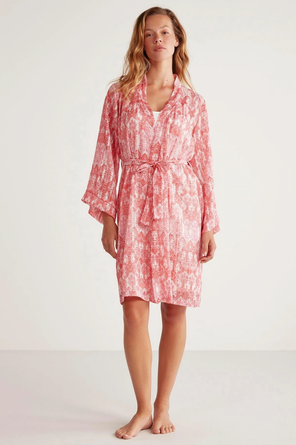 Belden kuşaklı sabahlık takım.